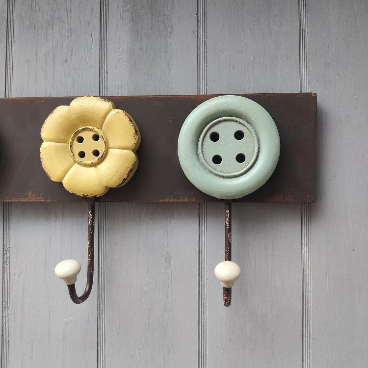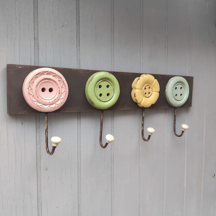 Bemærk de 4 blomster som ligner knapper - og som har et rustikt look.