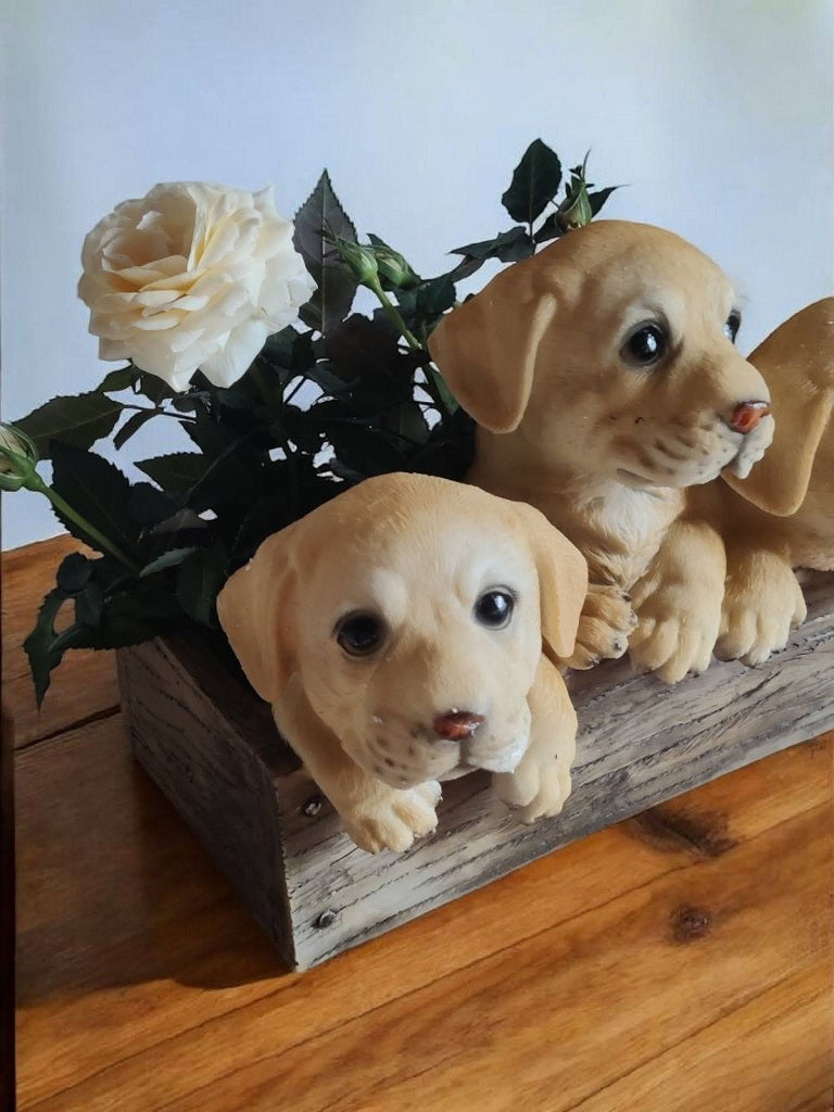 Du bestämmer själv om korgen ska vara till dina nycklar i entrén eller om du vill lägga blommor i korgen eller något annat. Oavsett blir det underbart med de 3 valparna.